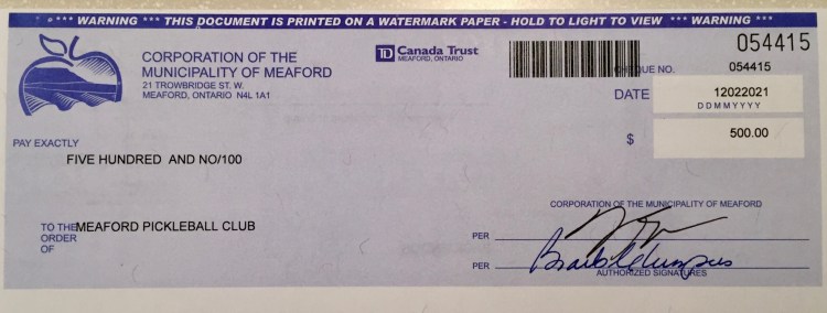 Shout out to Meaford Council for another $500 grant for 2021 for our club from the Community Bursary Program. This will be out third year out of an anticipated 4 years to receive this grant for which we are very thankful. The anticipation is growing as we get ready to start up this year – hoping to land on the outdoor Pavilion Courts on June 7.